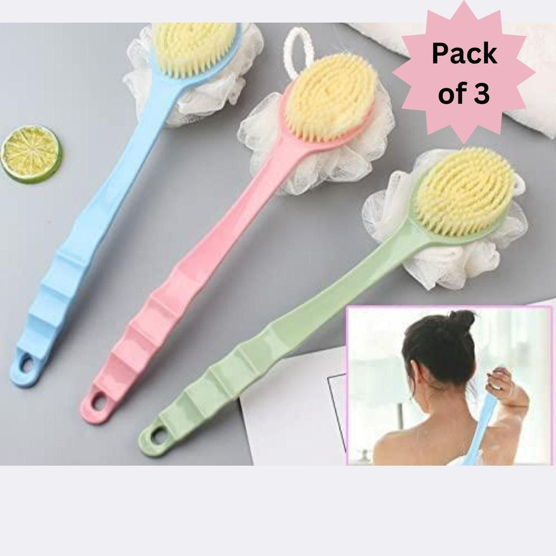 Arcreactor Zone 2 IN 1 loofah with handle, Bath Brush, back scrubber, Bath Brush with Soft Comfortable Bristles And Loofah with handle, Double Sided Bath Brush Scrubber for bathing(Pack of 3)
