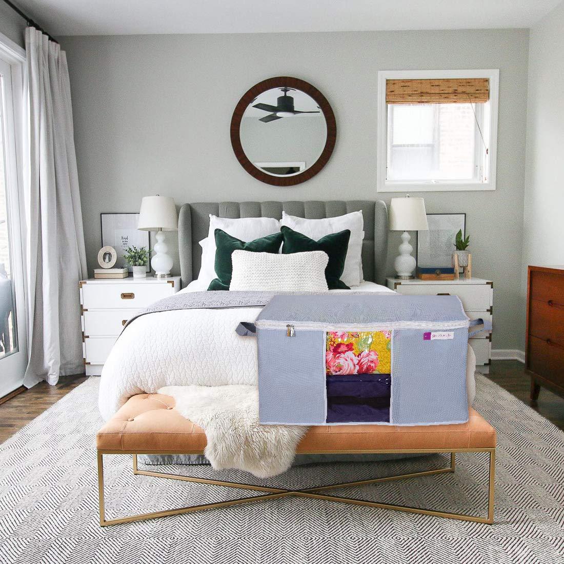 These UnderBed Blanket Storage Bag Covers (Set of 2) provide extra space to neatly store up to two double bed comforters. Made from durable non-woven fabric, each bag features a large transparent window for quick identification of contents without opening. Equipped with two strong side handles, they offer easy lifting, removal, and repositioning, making organizing your bedroom hassle-free.